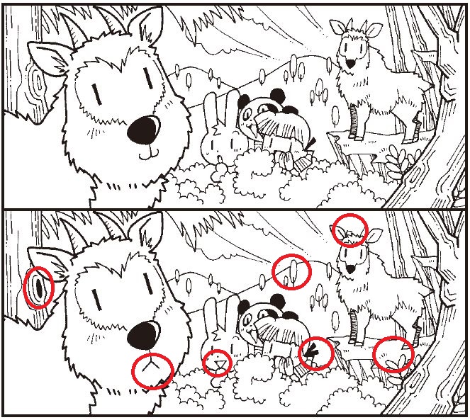 『モシカ ・ 氈鹿』の7つのエラーは以下の通りです。(左から順に)