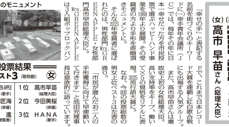 また、高市早苗さんは憲政史上初の女性総理大臣。高い支持率をキープ、働いて×5の覚悟をリアルに表現。2025流行語大賞に。