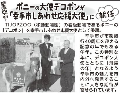 TIJOPZOO(移動動物園)の看板動物であるポニーの『デコポン』を幸手市しあわせ応援大使として委嘱。