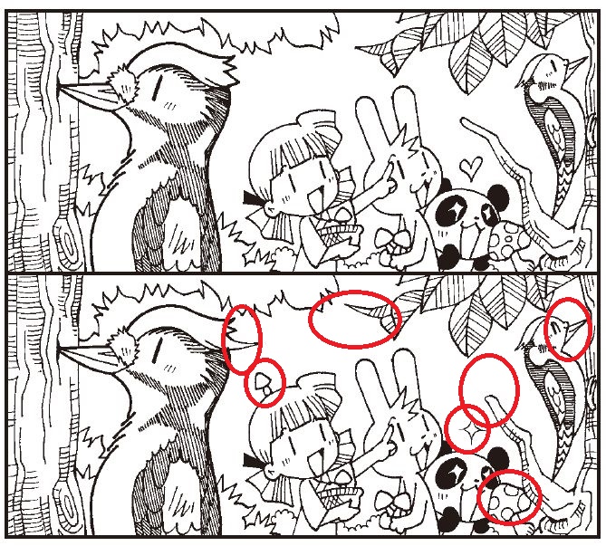 『キツツキ・啄木鳥』の7つのエラーは以下の通りです。(左から順に)